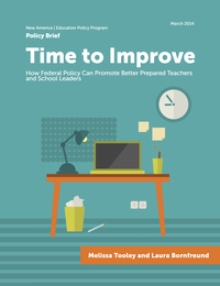 In Time to Improve, New America’s Melissa Tooley and Laura Bornfreund offer recommendations for a new federal approach to addressing current issues with educator preparation and advancement policies that recognize the need to move quickly, yet thoughtfully, to promote better prepared teachers and school leaders.