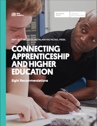To make apprenticeships more viable and more widely available for students, we'll need to connect them to our higher education system, letting students be apprentices and college students at the same time. This has already happened in other countries with more extensive apprenticeship systems, and there's no reason that American policymakers shouldn't follow suit. In this policy paper, produced with support from JPMorgan Chase & Co., Mary Alice McCarthy, Iris Palmer, and Michael Prebil lay out a set of eight recommendations for reforming our national apprenticeship and higher education systems to provide the foundation for a significant expansion of American apprenticeship.