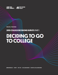 Today, New America’s Education Policy Program released the first in a series of College Decisions Survey briefs that analyze new survey data about what prospective college students know about the college-going and financing process. Part 1: Deciding to Go to College focuses on why students decide to pursue college in the first place, and the factors students consider when deciding to apply to a specific college. It looks at how financial concerns are one of the major drivers in deciding whether and where to go to college.