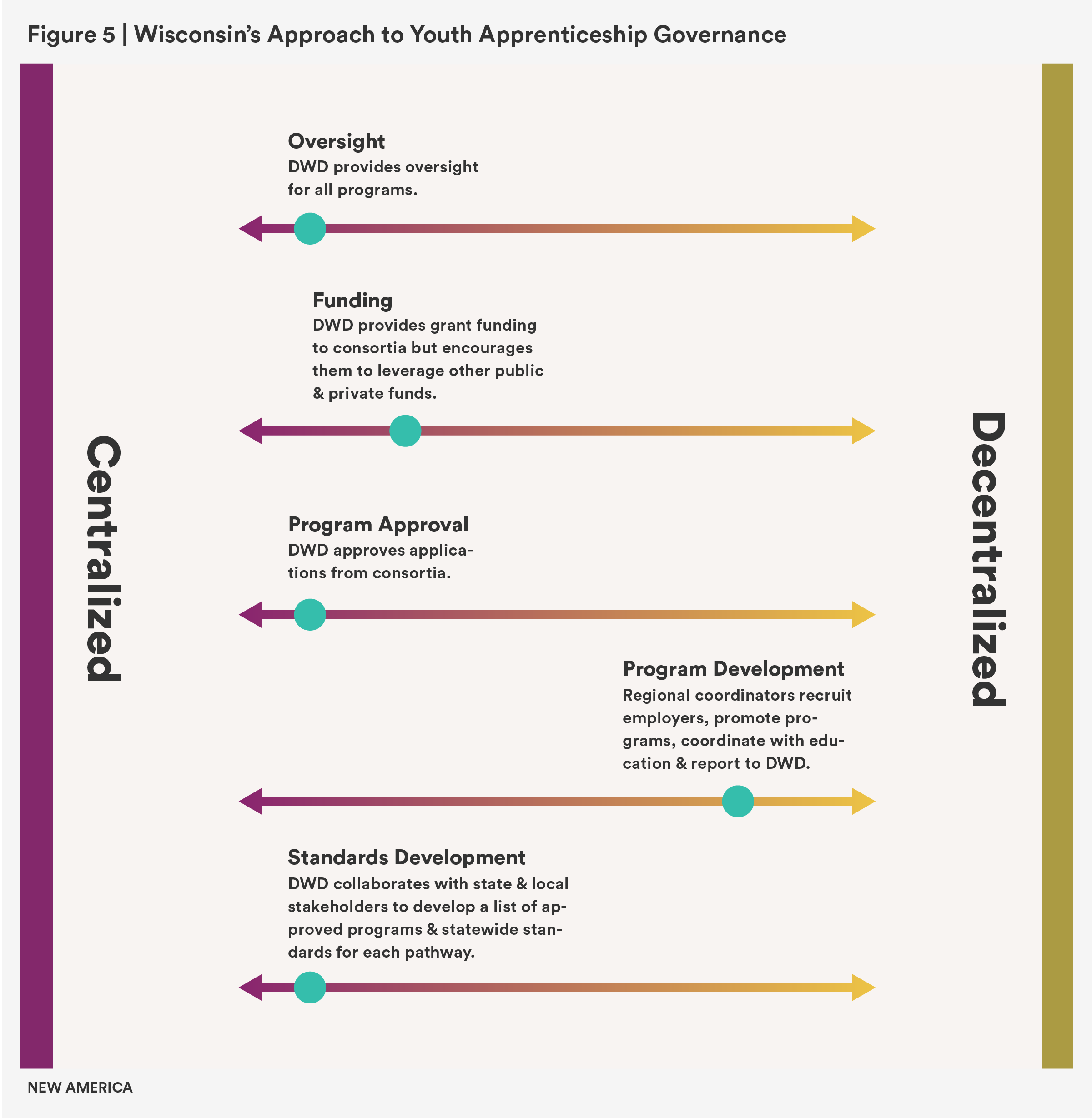 Figure 5 summarizes Wisconsin’s approach to youth apprenticeship governance and the key system functions.